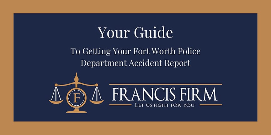 If you were involved in a Fort Worth car accident, we want to help you and your family through this difficult process. Our Fort Worth car accident lawyers at Francis Injury can answer any questions you have about getting your Fort Worth accident report. If you were injured, you may be entitled to compensation.